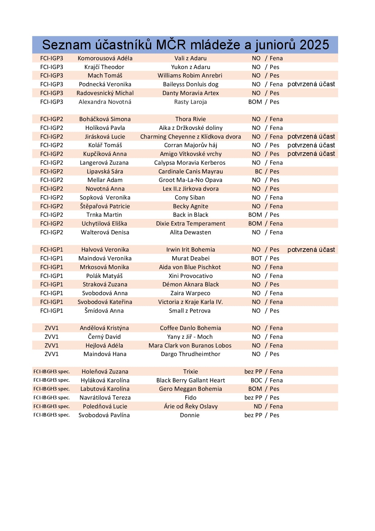 Seznam účastníků bude doplněn podle VS - zde